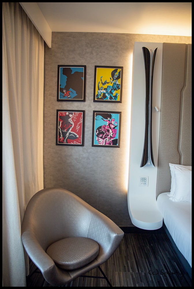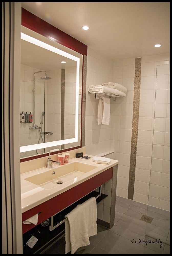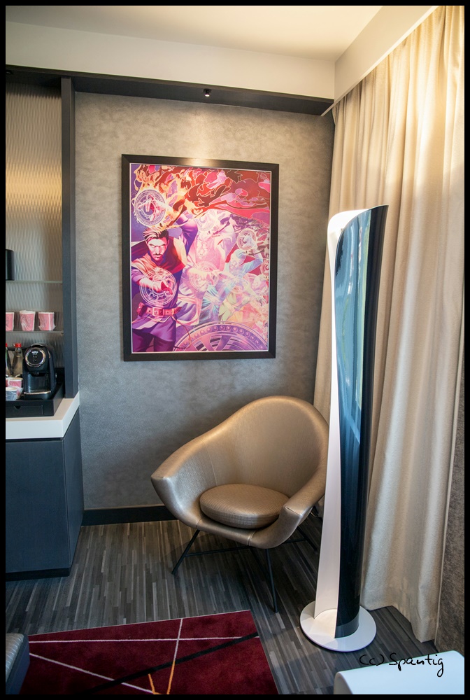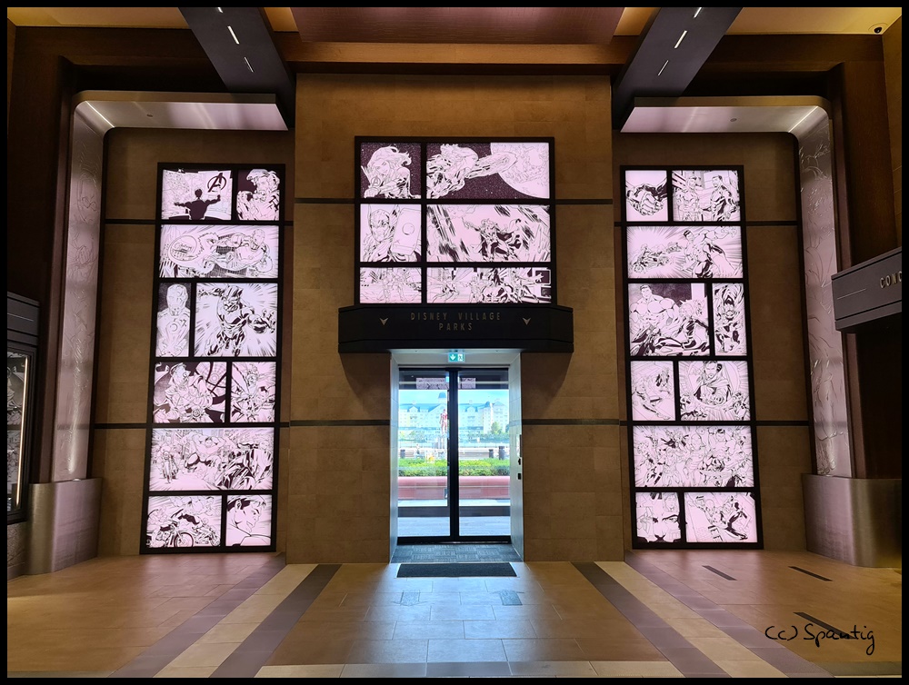 Das Hotel New York war immer unser Lieblingshotel und als die Umbaupläne bekannt wurden, war ich schon recht skeptisch. Die Concept Arts machten Hoffnung und das Ergebnis ist wirklich toll. Die Lobby erinnert an eine U-Bahn Station. Die Zimmer sind stylisch in rot-grau-schwarz Tönen gehalten. Das Highlight ist der große Spiegel mit integriertem Fernsehen. Wir hatten im September 2021 den ESC gebucht und bekamen ein Zimmer (8211) im 8. Stock mit Blick auf den Parkplatz und Space Mountain.